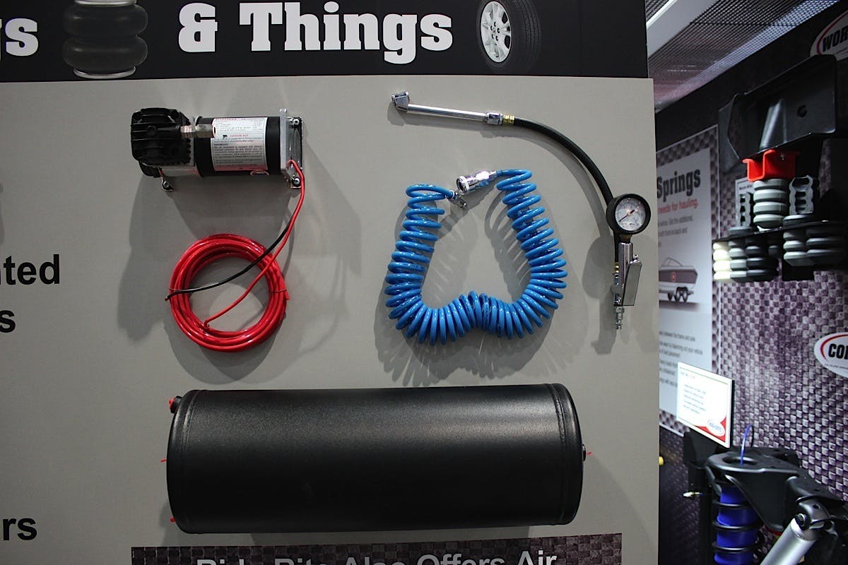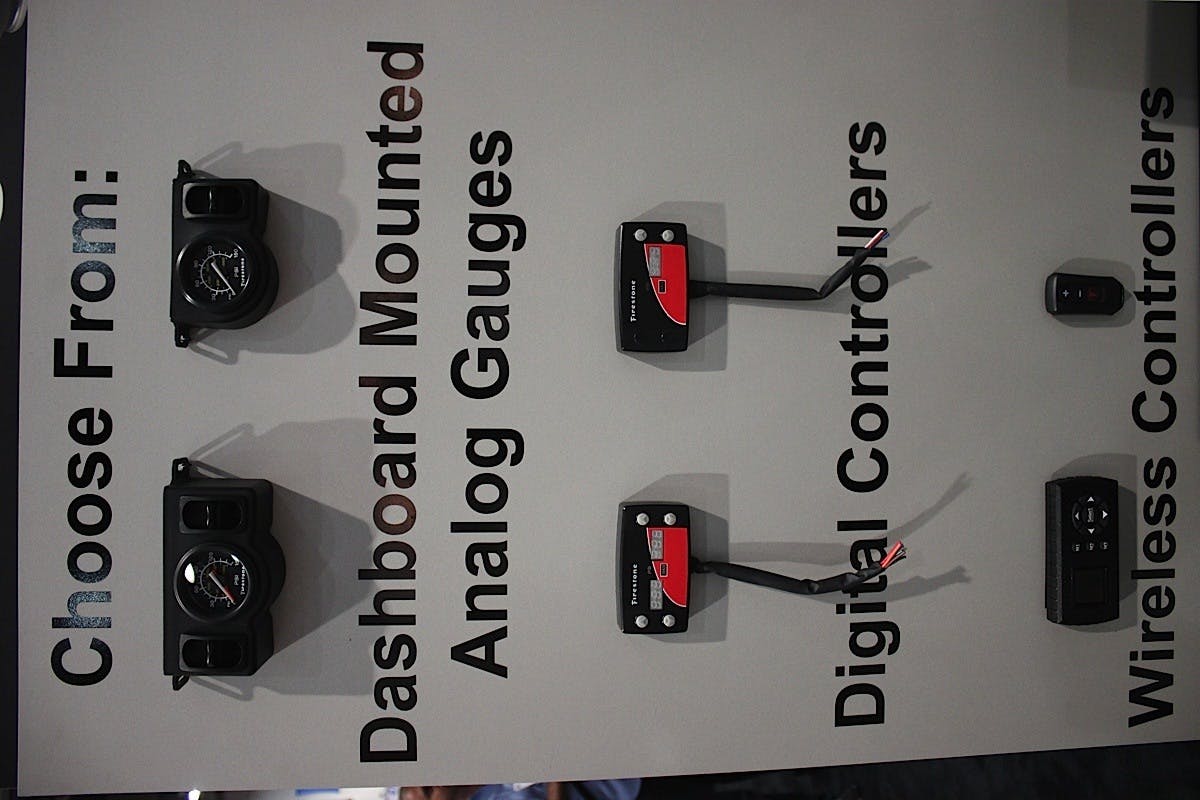 Over on the other side of the booth, we got a look at Firestone’s suspension accessories that would enhance the experience of using the Ram air spring kit. “A lot of folks install our kits and then find that they’d like some sort of on-board air management system, and this is what we offer.” Green gestured at the board of controllers and gauges available for truck applications.