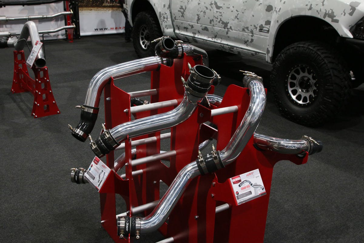 There was, also, a whole slew of new intercooler tubing on display. MBRP is now offering intercooler tubing for the 2013 through 2015 Ford Super Duty equipped with a 6.7 Power Strokes. They, also, have intercooler tubing for 2011 through 2015 GM powered trucks with the 6.6 Duramax. All of these are CNC formed for a precise fit.