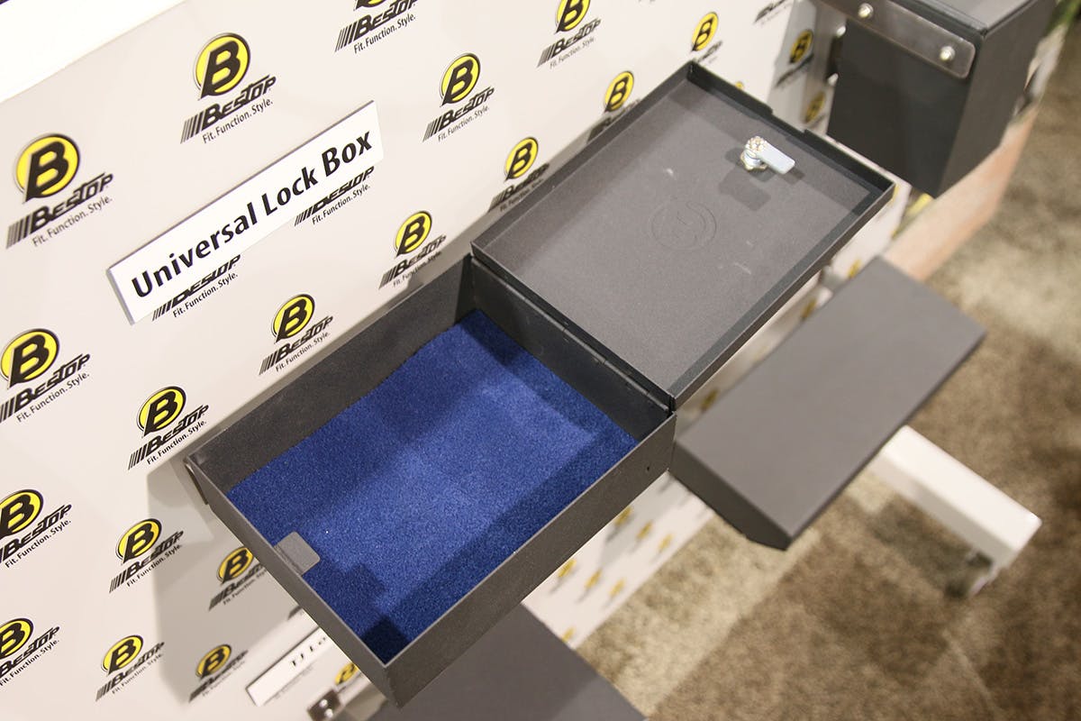 If someone tries to do a smash and grab, they won’t be getting any of your valuables (or protection like a gun). Their new universal lock box system is small enough to fit right into the center console of your truck or under any seat. They are large enough to hold most of your valuables. “The universal lock box is security above what your standard console offers,” explains Rick Vermeil, Marketing Specialist for Bestop.
