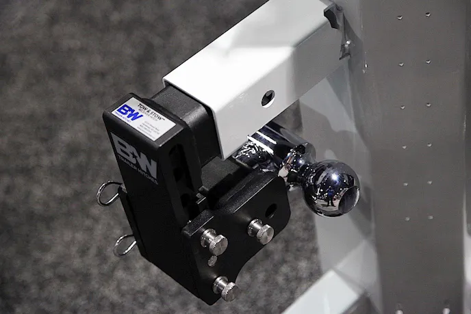 A new product that B&W will be launching in the near future is a 2.5-inch Tow-N-Stow adjustable ball mount, with a large shank for heavy-duty trucks, that will be available in a dual- and tri-ball configuration. B&W’s Tow-N-Stow line of hitches come with multiple ball sizes to eliminate the need for acquiring several different ball mounts, and they quickly and easily stow under the vehicle when you’re not towing, to save you and others from those painful knee-strikes into the unused hitch. The hitches are locked into the receiver to prevent theft, and height adjustments are made in one-inch increments, giving you a range of options, depending on the length of the drop purchased. The receiver hitches have a 10,000 pound GTW and 1,000 pound VTW.
