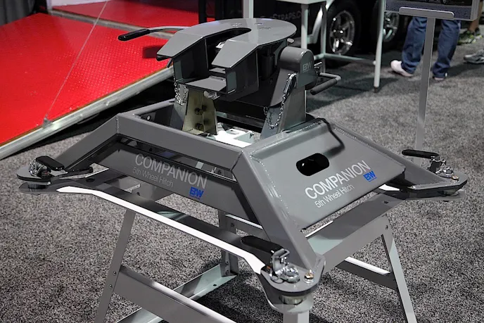 B&W offers fifth-wheel hitches of all configurations, but its Puck-style hitches present the cleanest overall appearance of fifth-wheel designs, with small pucks mounted in the bed of the truck that the hitch can be mounted to or removed, leaving few obstructions behind when not in use. The companion line of hitches have an effortless hookup and release through the use of cam-actuated jaws. Made of one-inch thick cast metal, the jaws are machined with tight tolerances to give you a perfect connection to the fifth-wheel and an ultra-smooth towing experience.