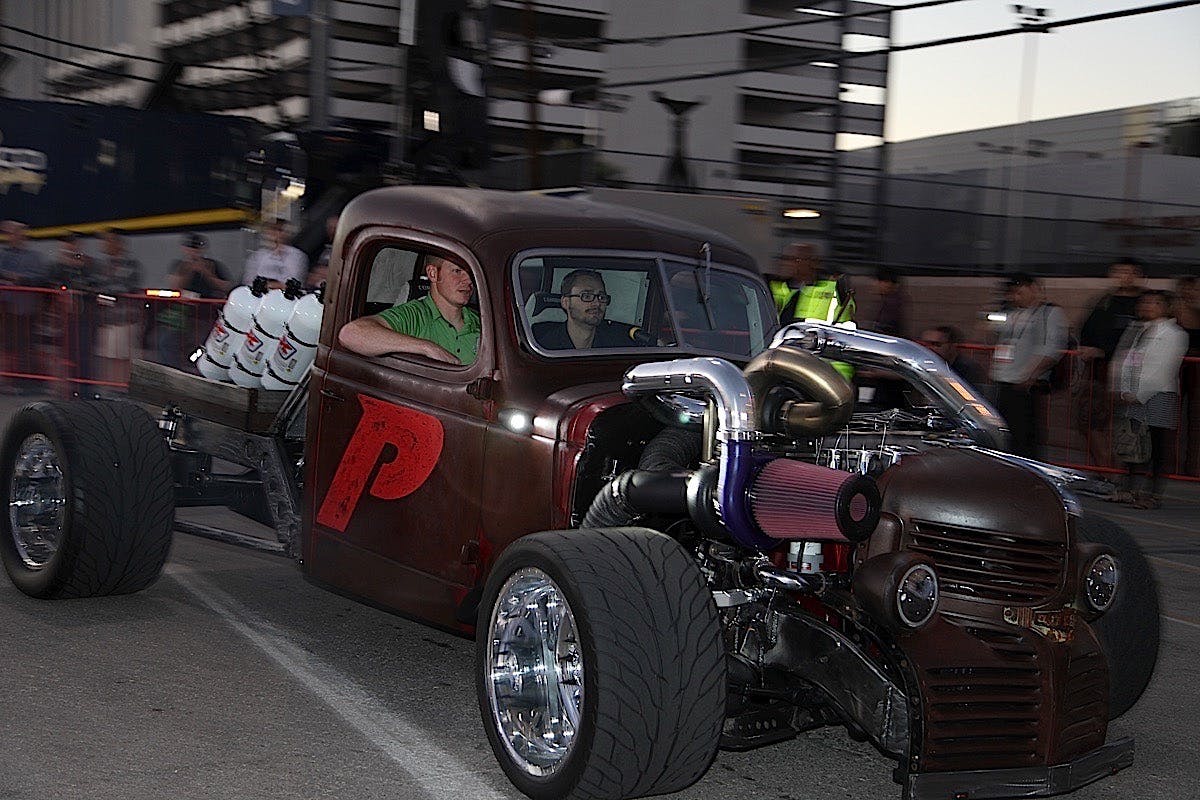 IMG_0052While we always look forward to attending the annual show, we are naturally a bit distracted with the commercial side of things and have a number of meetings to attend. So SEMA Ignited is a real breath of fresh air come Friday night. You can basically think of it as a SEMA Show afterparty in which all of the vehicles from the show are driven by their owners to an adjoining parking lot. When the gates open the first hundred or so cars can drive in with relative ease, but the portion of the strip blocked off for the drive fills up quickly. Once the line fills up, the vehicles continue to poor in for several hours into the night.