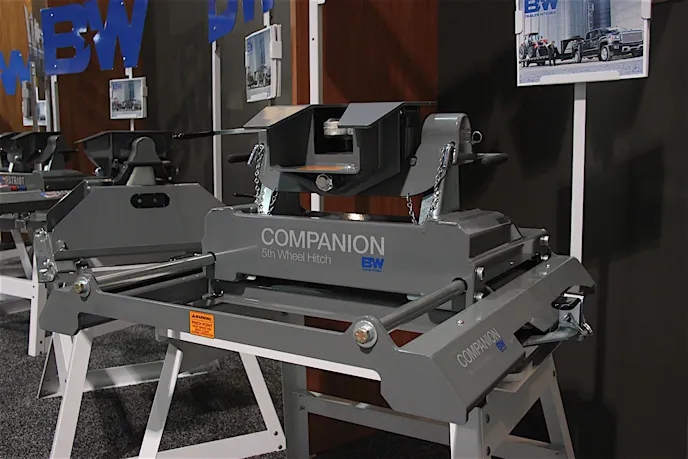 The latest to drop from B&W is the OEM “Puck” Slider fifth-wheel hitch. Beth Barlow, B&W’s marketing manager, was able to describe what this hitch was all about.