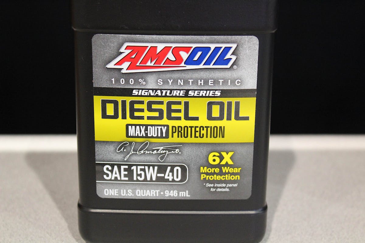 The maximum-duty protection SAE 15w-40 diesel engine oil provides six times more wear protection. The Max-Duty oil is available in 5W-30, 0W-40, 5W-40, and 15W-40 blends. Per AMSOIL, the Diesel Oil Turbo Truck is a 5W-40 SAE blend and provides up to four times more wear protection as well as better engine performance and compatible with all exhaust treatment devices. The turbo truck products are available in a 10w-30, 5w-40, and 15w-40.