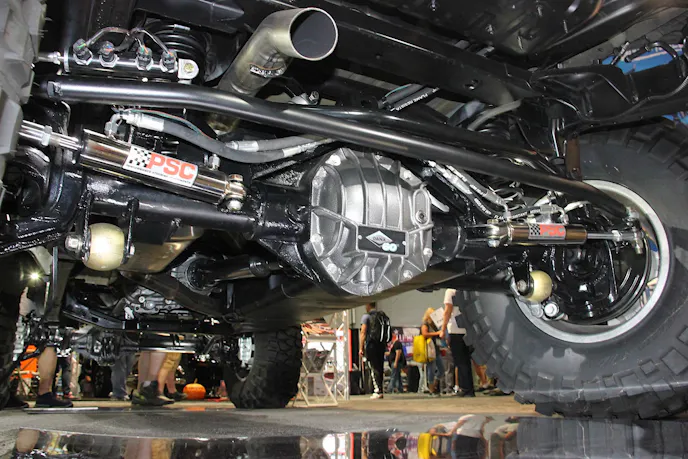 “Under the hood, the Jeep has the new Cummins R2.8 turbodiesel crate engine,” said Speir. “This is Cummins’ new motor that’ll replace the 4BT. Underneath, the Ultimate Dana 60 is up front, while the rear showcases our Builder Axle Program that we’ve launched here at the Show. It’s also a steerable Dana 60.”