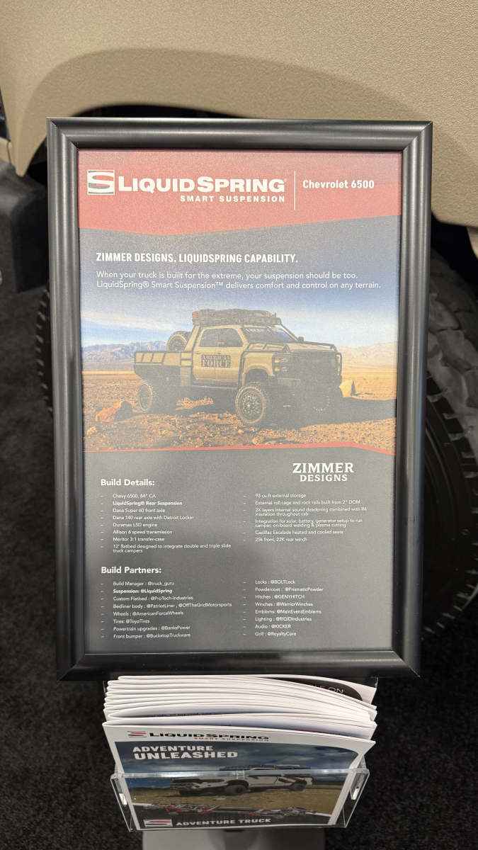 At the 2025 SEMA Show, LiquidSpring showcased a Chevrolet Silverado 6500HD medium-duty truck designed by Zimmer Designs. With its larger-than-life demeanor and innovative blend of functionality and flash, the massive truck drew a multitude of eyeballs all week long. Since it was located in the LiquidSpring Smart Suspension booth, the truck naturally ran the company’s rear suspension system, making the commercial-grade medium-duty GM platform more palatable for off-road exploration.