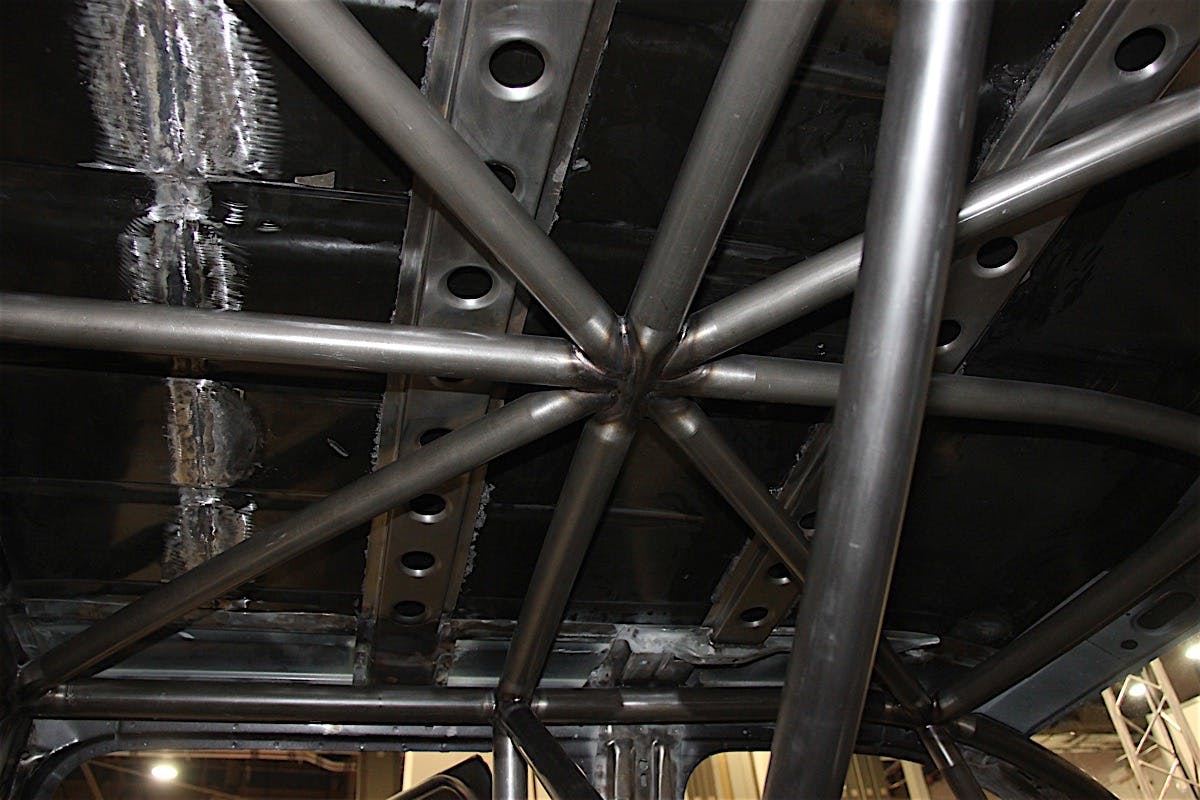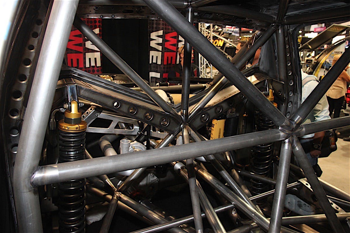 Opening the doors to this trophy truck, we could see firsthand that this was definitely not just a caged prerunner built inside of three months. As Robby described, this had been in the works for more than two years – and we could tell. The tubing was everywhere, and its two-inch thickness spoke to extreme durability and rigidity. Along the back of the cab and in the roof, it came together in eight-point junctions with clean, professional TIG welding.