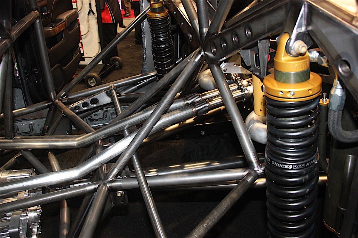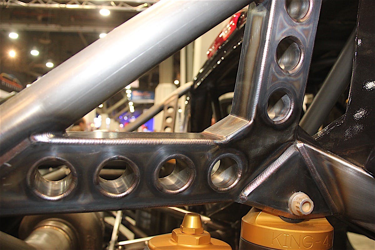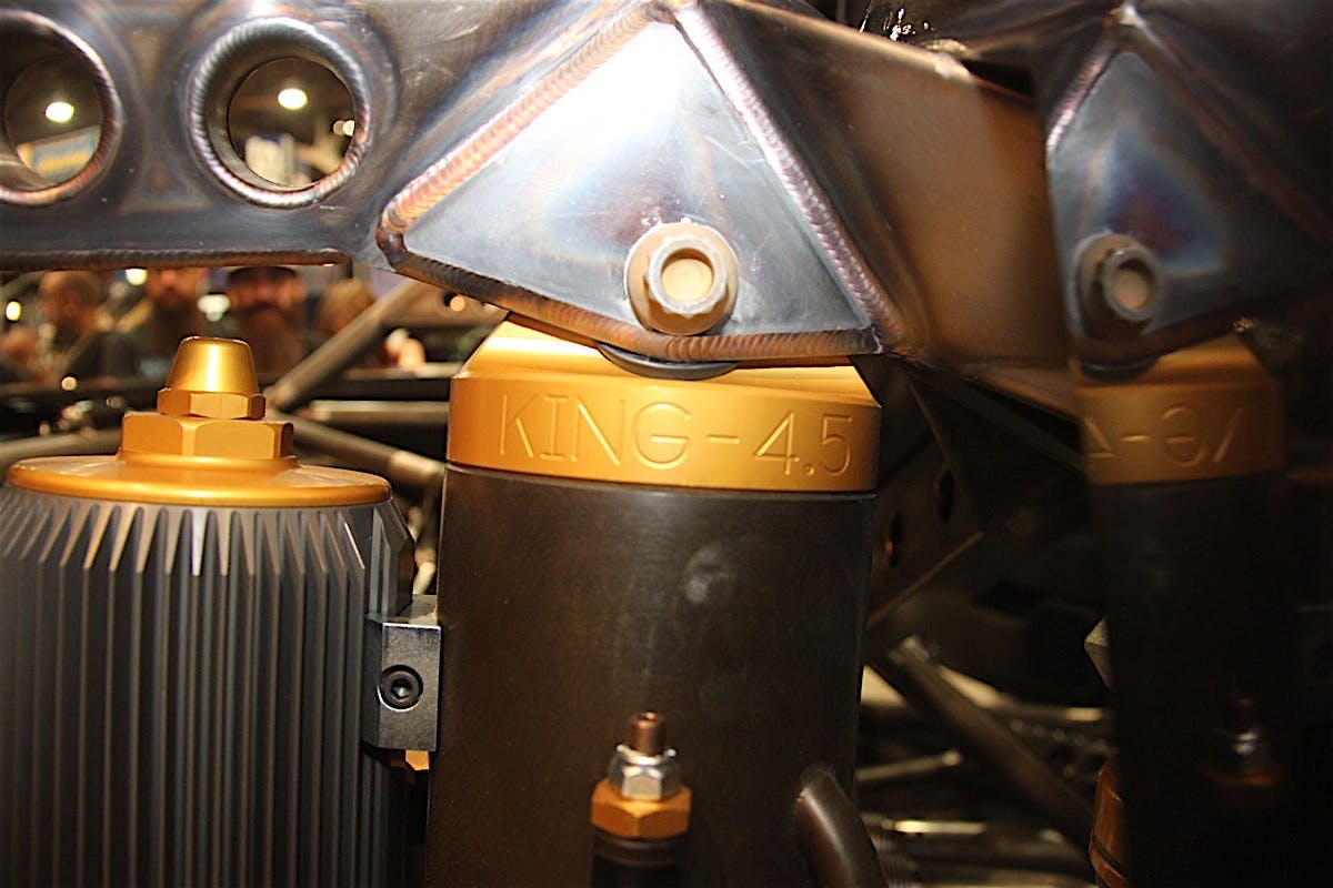 The suspension setup is just as astounding, too. Up front, this trophy truck uses dual A-arms, giving the MDD 25 inches of travel, while the rear has an adjustable four-link. King 3.0-inch remote reservoir coilovers and 4.5-inch five-tube bypass/remote reservoir coilovers were on each corner, along with King 2.5-inch bump stops and custom-made sway bars.