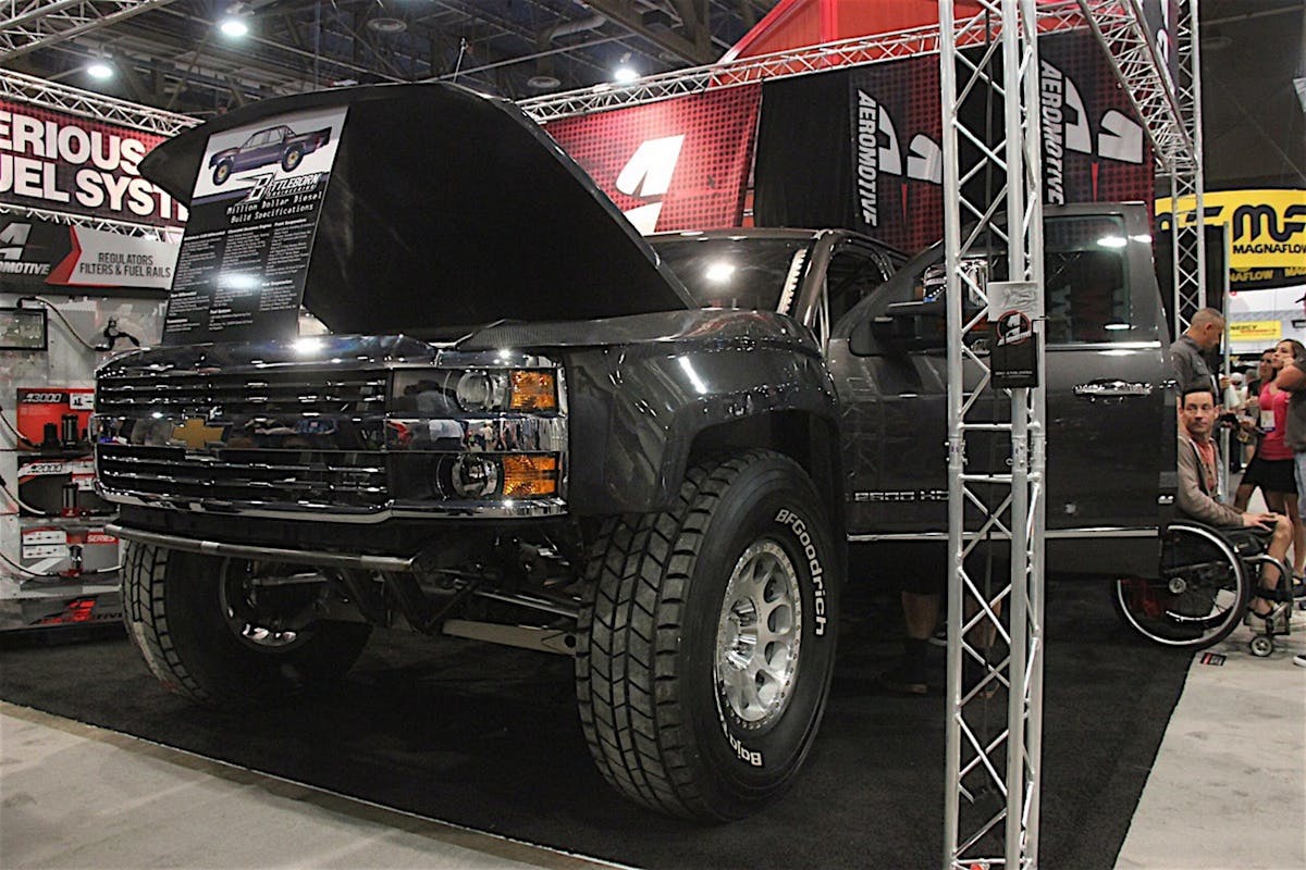 We saw the Million Dollar Diesel at the Aeromotive booth in the Central Hall, and heard from Chevrolet that the truck had been entered into the Design Awards for 2016. We stopped by to get a closer look at this truck and what it had in store for the off-road world.