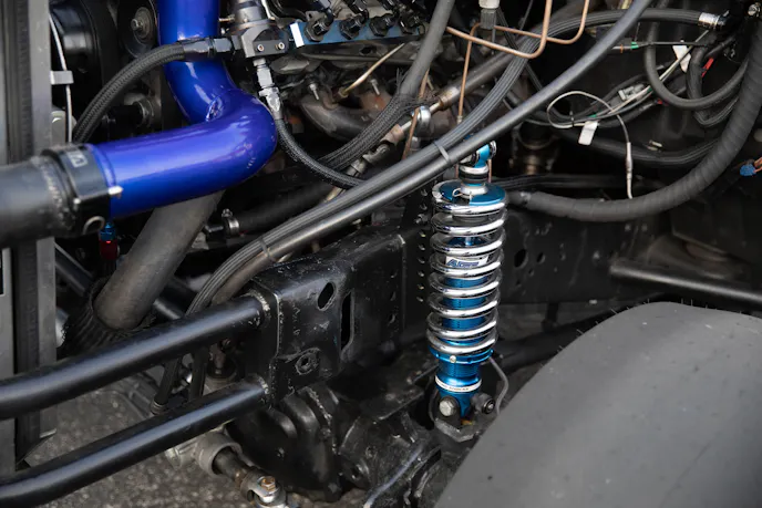 As expected, the inside of this rocket looks like a pure race car. Features include delicatley placed wiring, a lightweight Kirkey Racing aluminum seat, a RacePak data logger for tuning needs, and an NHRA-certified 8.50 roll cage. When you’re competitive at this level, the rules are strict, and having a safe cage to keep drivers protected is a must.