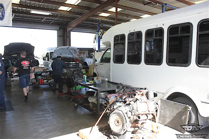 We had a rough idea of what to expect when we pictured Diesel Tech – lots of trucks, lots of work being done, the smell of oil in the air – but the sheer amount of activity tells us that business is booming, even for a shop specializing in only one brand.