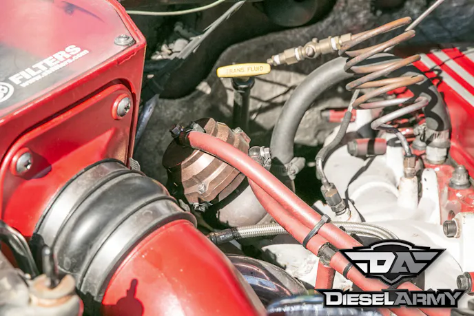 For air, the heads were removed and ported and polished. Before installing with ARP studs, the head was sent out to have o-rings installed. The forced induction is supplied by an Industrial Injection Silver 66 which sends the boosted air through an upgraded intercooler, around the Banks Power high ram intake and past the valves being operated by a Scheid Diesel cam. Air is initially sucked into the charger through an S&B intake and the boost pressure is regulated by a Precision Turbo wastegate.