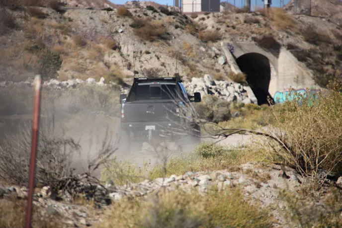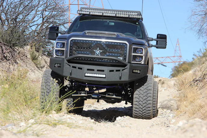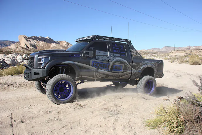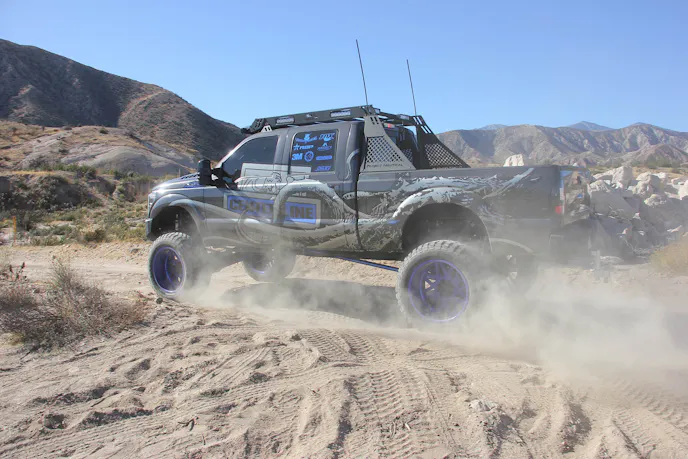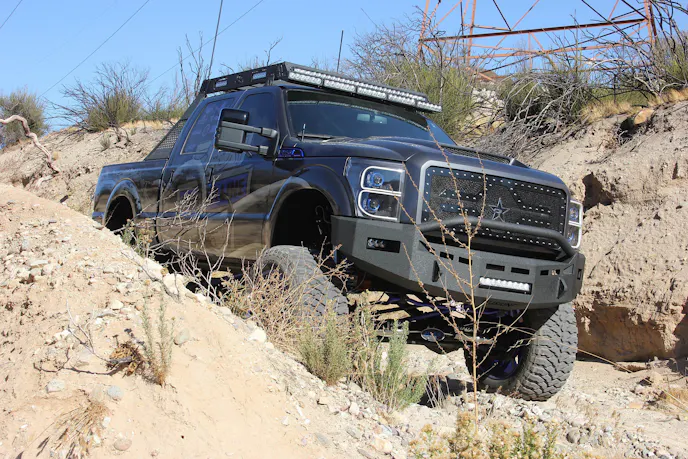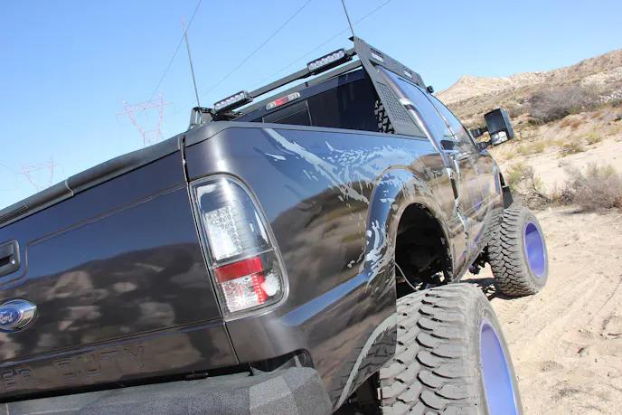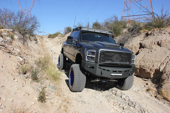 To give Chris' truck a workout and amazing backdrop, we headed to Mormon Rocks Interpretive Trail near Phelan, California. Here, a sand wash and rutted trails were the sorts of terrain put up against the Super Duty.