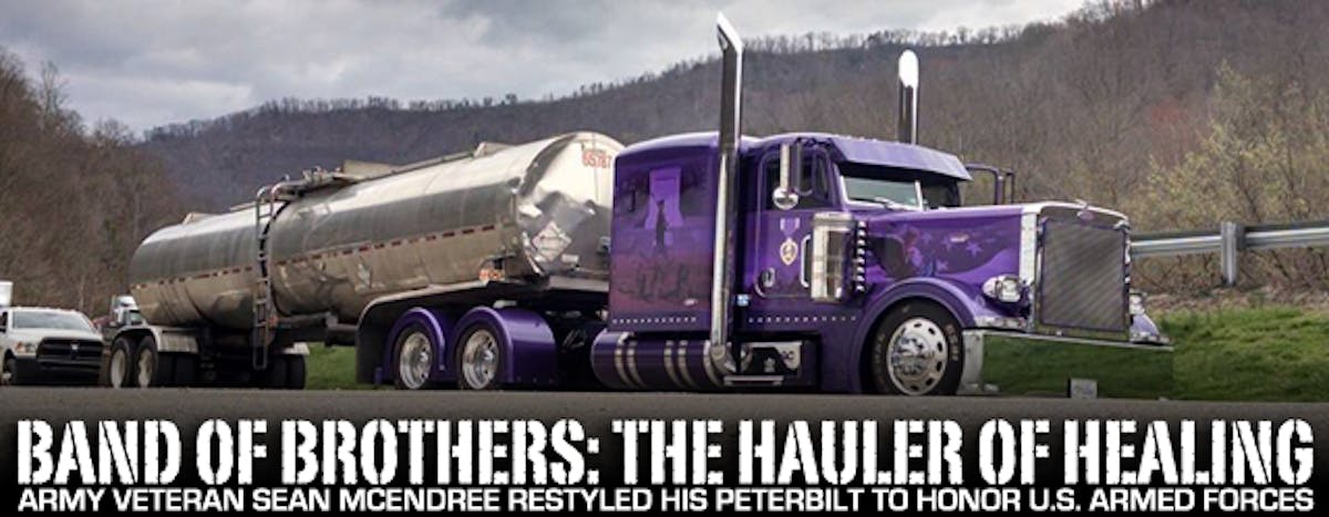 That’s why we enjoy getting to see semi-trucks that stand out from the droll and uninspired crowd. Army veteran Sean McEndree went this route with his 2006 Peterbilt 379, turning it into a rolling tribute to the fallen brothers and sisters in the United States Armed Forces. He calls it “Band of Brothers.”