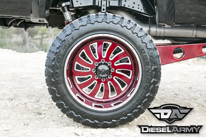 Why the 14 inches of lift? Well, Olivo knew that his wheels and tires needed to be big, as the SEMA Show is all about flash. So, he installed a set of 24×14 inch billet (Monoblock) American Force “Storm” wheels and wrapped them in a set of Toyo Tires Open Country M/T 40×15.5 tires. With the wheel and tire package being so wide, Olivo opted for a set of Bushwacker fender flairs to even it all out.
