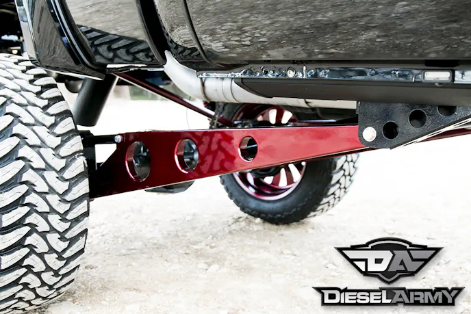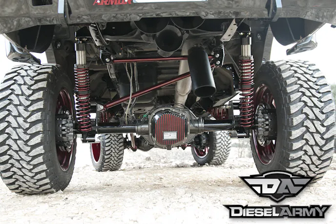 With the help of JCT Motorsports, the build was on. The entire suspension was removed from the truck and a Pure Performance lift was purchased. They modified it to get 14-inches of total lift. The rear leaf springs were completely removed and coil over shocks were installed on all four corners. To keep the axle centered and under the truck, a custom panhard bar was fabricated in the rear.