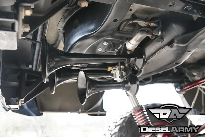 With the exterior just about finished, Olivo installed an Undercover tonneau cover. The tonneau cover along with Undercover Swing Cases, ensure that anything important in the bed of his truck is safe. Under the bed, a set of Horn Blaster’s train horns were mounted. As if this truck needed more attention -but everyone will certainly get out of the way.