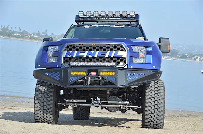 The body, meanwhile, was made to stand out from the rest. It has a near seamless transition from the 2003 look of the doors to the modern-day, 2015-up F-150 front and rear ends. Being that McNeil’s bread and butter is making fiberglass panels that look OEM while staying wide and out of the way of the tires, it makes total sense that their handiwork would manifest itself here in perfect form.