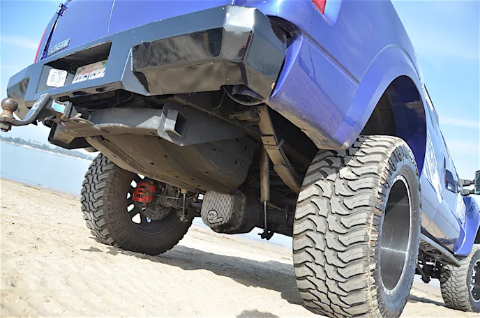 That is accomplished in part by the suspension. In this case, it’s a kit provided by BDS Suspension, and is an eight-inch, four-link, coilover setup up front, and a leafsprung affair out back with BDS Recoil traction bars. Adjustable Fox coilover shock absorbers can be found on all four corners, as well as a couple of Fox air shocks being used as steering stabilizers.