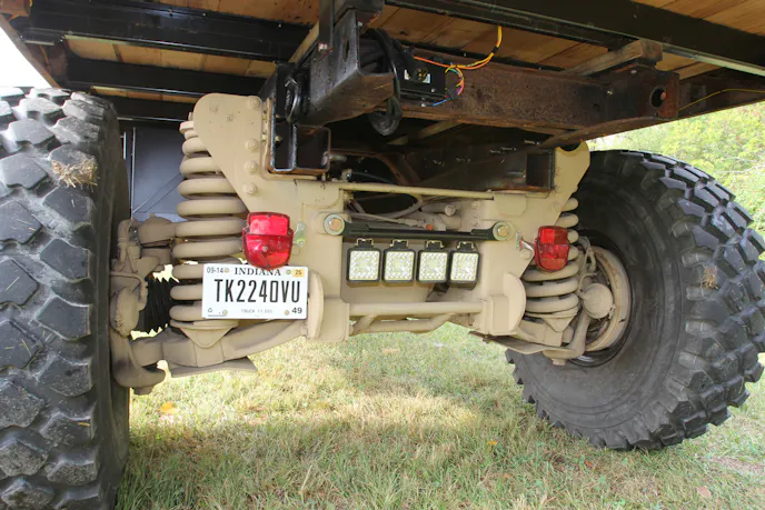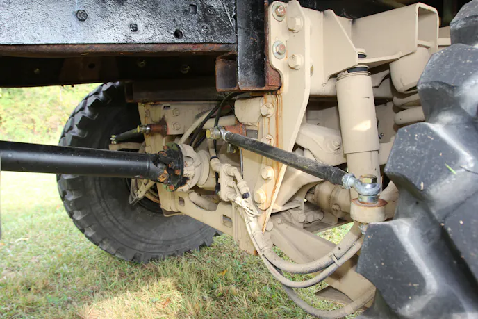Each TAK-4 assembly is a complete bolt-in system that includes coil-spring independent suspension, integrated differentials, pneumatic drum brakes, pneumatic lockers, a central tire inflation system, and 4.63 gears. Oshkosh Defense offers the TAK-4 in Light, Premium Light, Medium, and Heavy variants, and based on the specs, Ethan’s appear to be Medium units. They are rated for an off-road GAWR of up to 23,000 pounds and deliver 16 inches of independent wheel travel along with 15.6 inches of ground clearance on 16R20 tires.