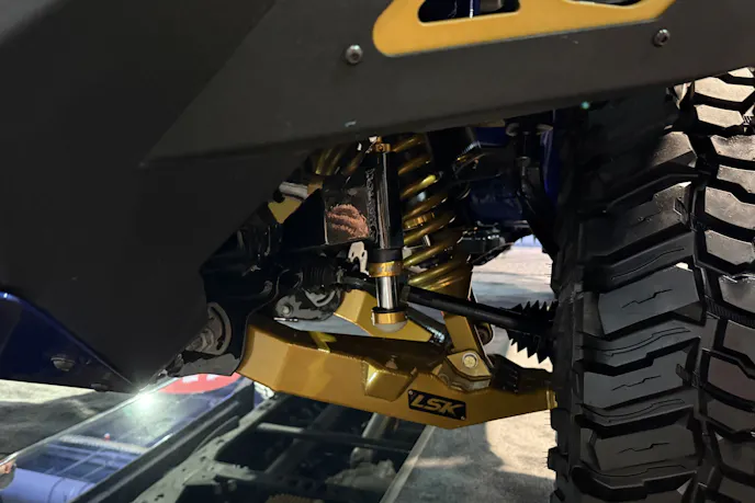 The truck’s silhouette gives away that something special is going on underneath. Instead of adapting heavy-duty hardware, Top Notch Garage opted for LSK’s 2019+ GM 1500 bolt-on long-travel suspension kit, a system engineered to dramatically enhance off-road performance while staying friendly enough for daily use.