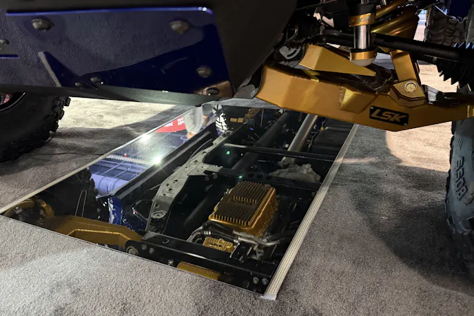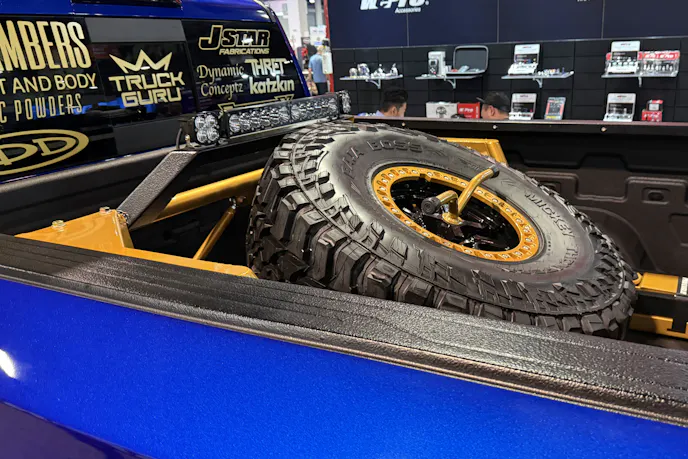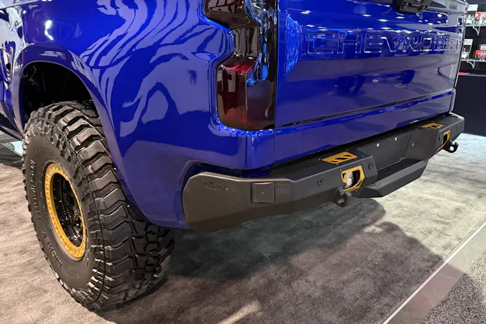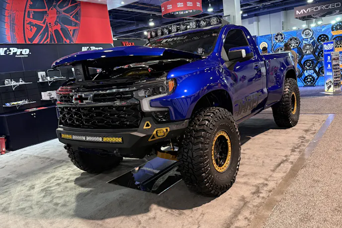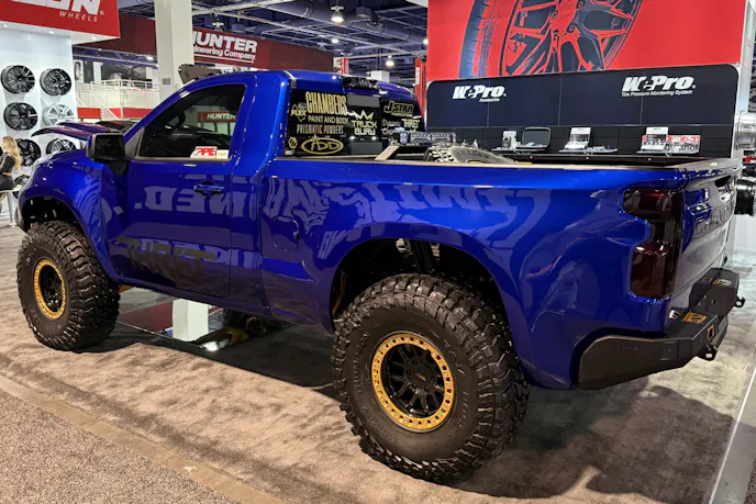 While many SEMA builds lean heavily toward aesthetics, this Silverado delivers legitimate capability beneath its polished exterior. The spool, whistle, and exhaust note—when paired with the long-travel suspension cycling over the massive tires—were enough to draw crowds all week long.