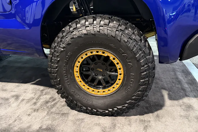 The build uses ADD bumpers for clearance and protection, paired with Baja Designs lighting to ensure the Silverado stays functional long after the sun goes down. The wheel and tire package brings everything together: 17-inch Threat Precision Series beadlock wheels wrapped in giant 40×13.50 Mickey Thompson Baja Boss tires, a combination that fills every inch of the widened fenders and gives the truck its unmistakable pre-runner presence.
