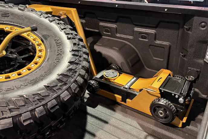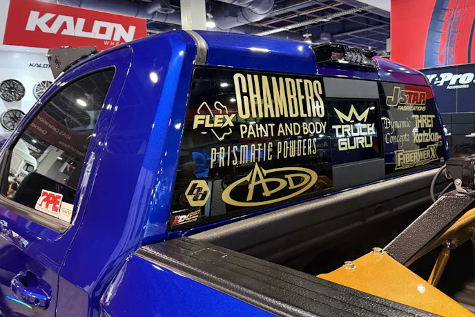 The visual tone of the truck is a blend of desert-runner and OEM concept. Chamber’s Paint & Body handled everything from fiberglass fitment to the flawless final finish, delivering a single-cab shell that looks crisp, straight, and intentionally understated. The clean bodywork only amplifies the aggressive stance created by the suspension and tires.