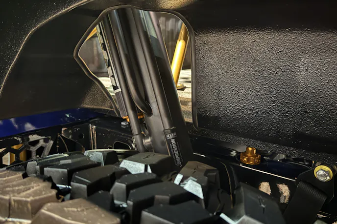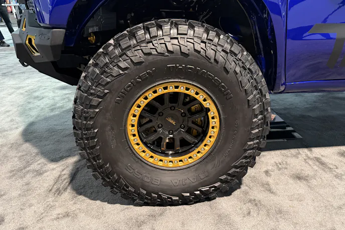 The build uses ADD bumpers for clearance and protection, paired with Baja Designs lighting to ensure the Silverado stays functional long after the sun goes down. The wheel and tire package brings everything together: 17-inch Threat Precision Series beadlock wheels wrapped in giant 40×13.50 Mickey Thompson Baja Boss tires, a combination that fills every inch of the widened fenders and gives the truck its unmistakable pre-runner presence.