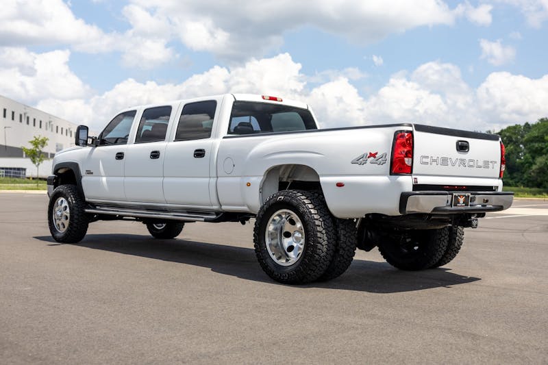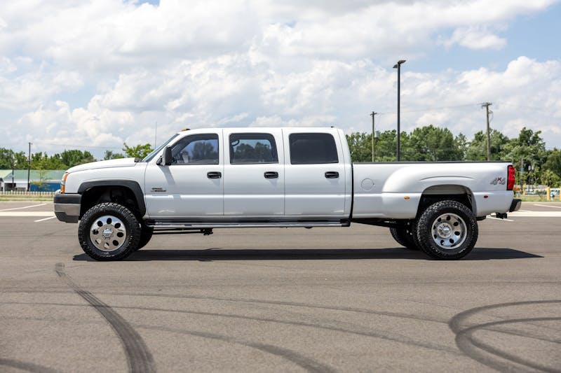 If you appreciate old-school build quality, unapologetic utility, head-turning style, and a strong hint of strange, buckle up. King of Cars and Trucks—a New Jersey-based used dealership with tons of drool-worthy diesels—has listed a rare gem. It’s a 2003 Chevrolet Silverado 3500 4×4 dually with a custom six-door conversion. This six-door Silverado sports a 6.6-liter Duramax turbodiesel (with just under 150,000 miles) under the hood. Whether you’re a growing family (the Mrs. just may say yes to this rig) or looking for a hauler with flair or a unicorn with personality, this beast might be exactly what you didn’t know you needed.