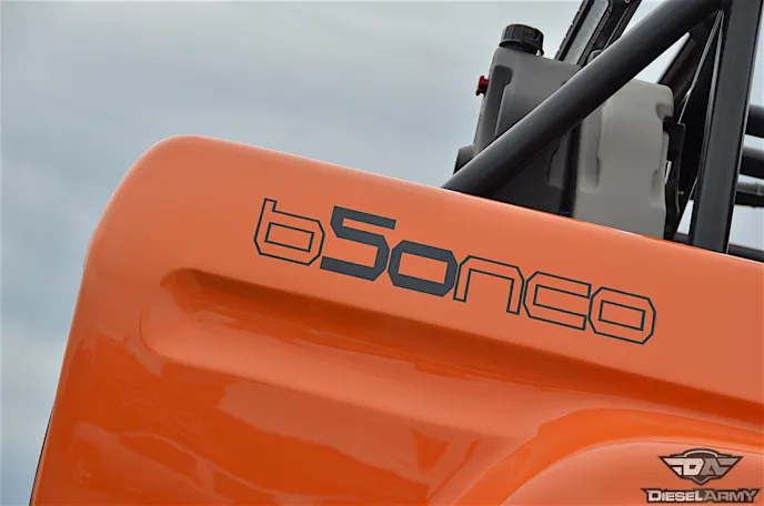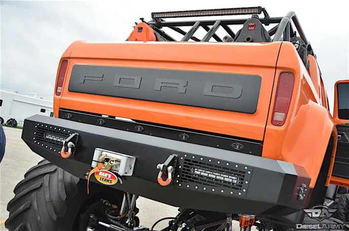 “We did all the fabrication in-house,” Adams explained. “From the roll cage that has the roof rack built into it to the bumpers that fit the line and width of the massive F600 front and rearend.”