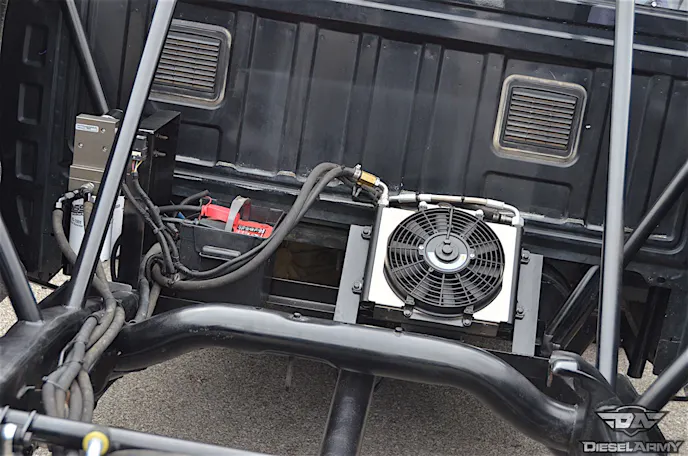 Petrick has also outfitted the truck with D&J 6.7-liter Cummins heads with side intake, 110 valve springs, larger exhaust valves, ARP 625 head studs, Fluidampr crank dampener, Flex-A-Lite electric fans, and is still on a stock bottom end.