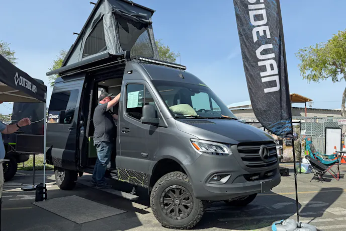 The Mercedes-Benz Sprinter remains the popular choice when it comes to diesel overland adventure vans. Many up-fitters and van customizers have gravitated toward the platform, as verified by what we saw on display. We’ve highlighted Outside Van’s Overnight Edition, a tasteful $236,000 adventure van with a Super Pacific roof top tent, foldaway Murphy bed, Agile Off-Road suspension, 50-inch lightbar, and loads of off-grid functionality. If this is what living in a van down by the river looks like, count us in.