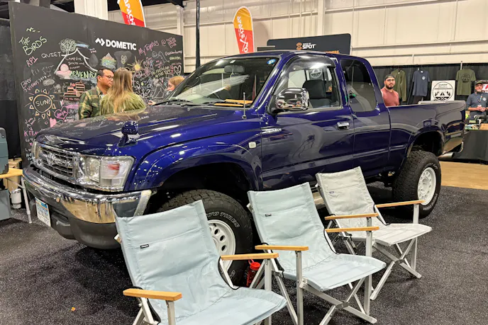 Bound for Nowhere showed off its adorably burple 1998 Toyota Hilux, a fresh Japanese import that has us immensely jealous. We found this sweet little turbo diesel nestled in the Dometic booth. A mild build may be in its future, but for now it sports a fresh set of Nomad Wheels wrapped around Toyo rubber. We are suckers for these right-hand-drive jewels.