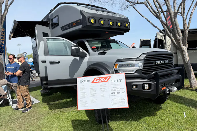 It wouldn’t be an Overland Expo without a half-million-dollar GXV Hilt by Storyteller Overland. This beautiful rig is underpinned by a Ram 5500 crew cab chassis and powered by the venerable 6.7-liter Cummins diesel with 360 hp and 800 lb-ft of torque. The exterior flaunts a tasteful front winch-equipped bumper, a host of KC HiLiTES lights, rear storage racks, an awning with dimmable LEDs, and a fullsize spare with an electric winch system. Its Laramie Level 2 Equipment Group gets you the 12.0-inch touchscreen, 17-speaker Harman Kardon sound system, heated second-row seats, and more. It sports a Liquid Springs Smart Suspension System with Tru-Earth Leveling and Hutchinson three-piece beadlock wheels wrapped in 41-inch tires for maximum off-road capability. The luxurious interior features all the normal niceties you’d expect, including a water purification system, programmable lighting, and ducted air conditioning. Lithionics power provides ample power (16.8kWh), two 3,000W inverters, and 1,320 watts of solar. The whole thing’s smothered in spray-on bedliner so you don’t have to worry about scratches—because you are doing challenging trails in this rig, right?