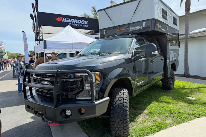 This is the Ford F-550-based Overlander 4×4 RV, and its special Overland Expo price comes in at $275,000. Understandably claimed to be the “company’s ultimate expression of luxury off-grid travel,” there were allegedly fewer than 20 of these built by Adventurer Manufacturing in Yakima, Washington. Only a handful—including this particular example—show off the rig’s full potential, which the company equates to “like an Earthroamer, but at a fraction of the price.” The Overlander 4×4 off-road RV features a slide-out dinette, which is pretty unique for these types of rigs. Adventurer Manufacturing has been building campers for over 50 years. We especially dig the old-school-meets-contemporary-overlanding graphics.