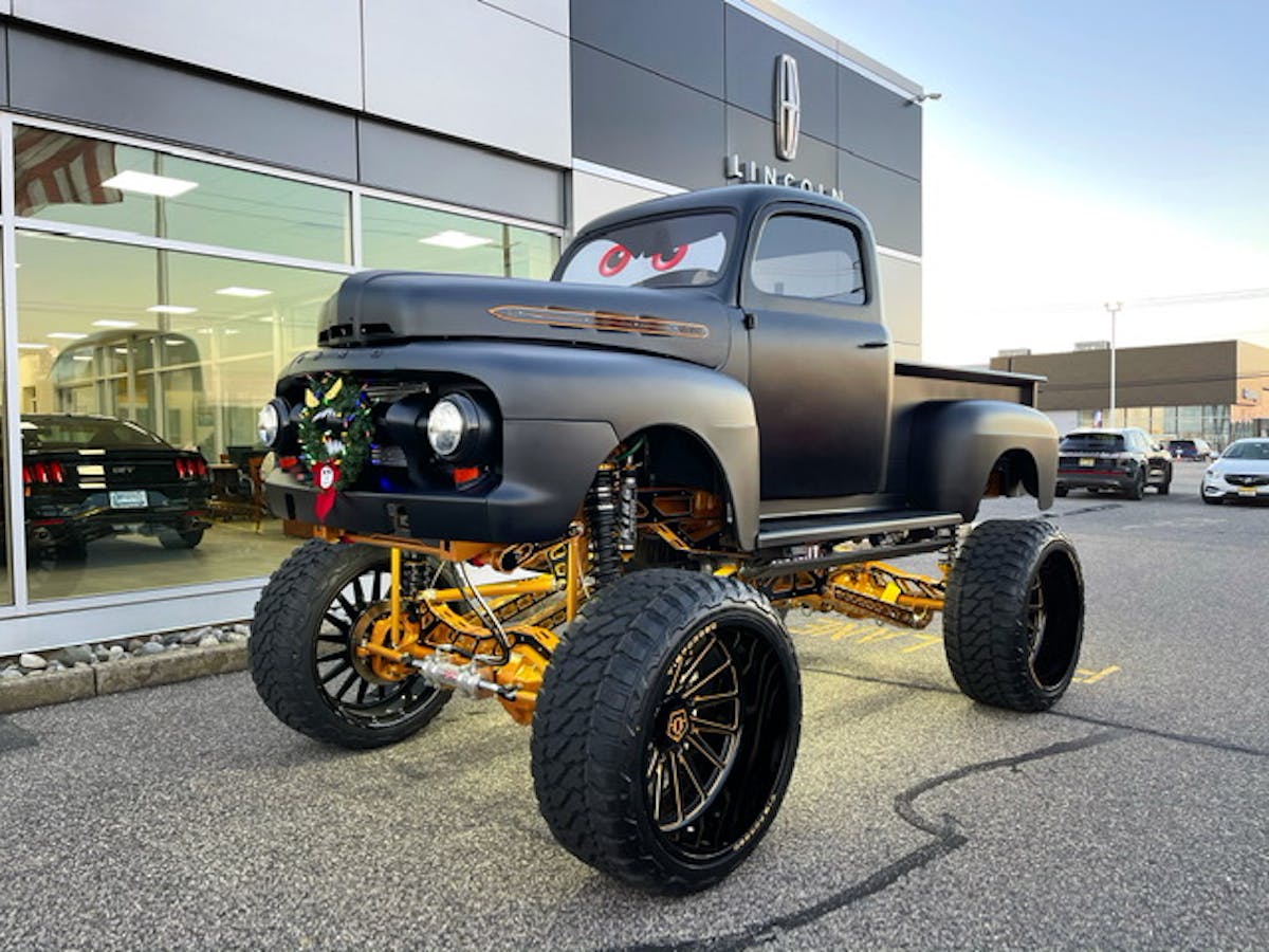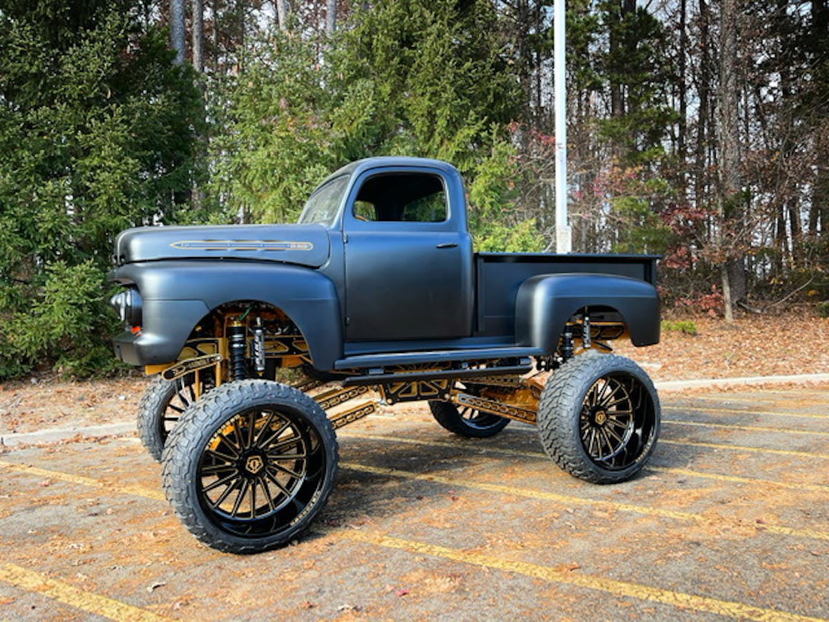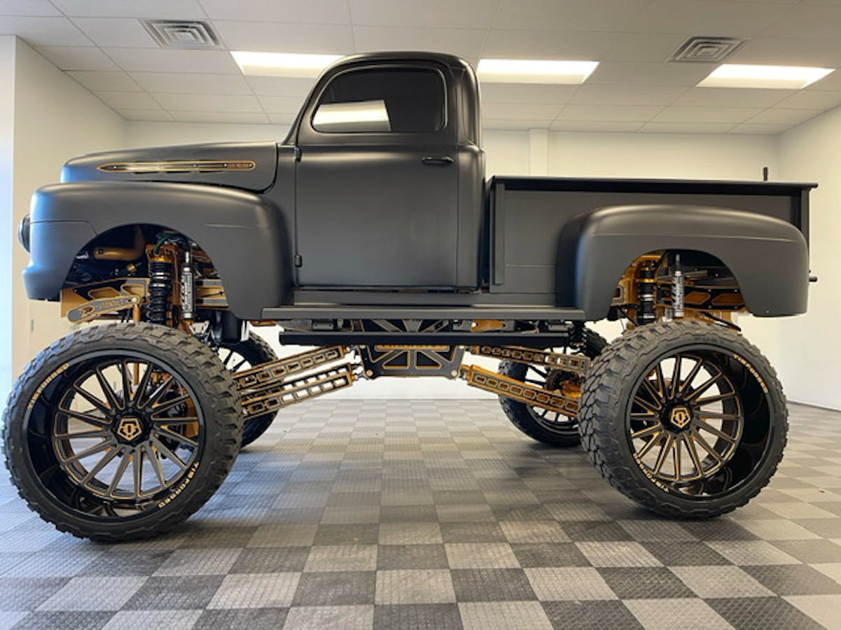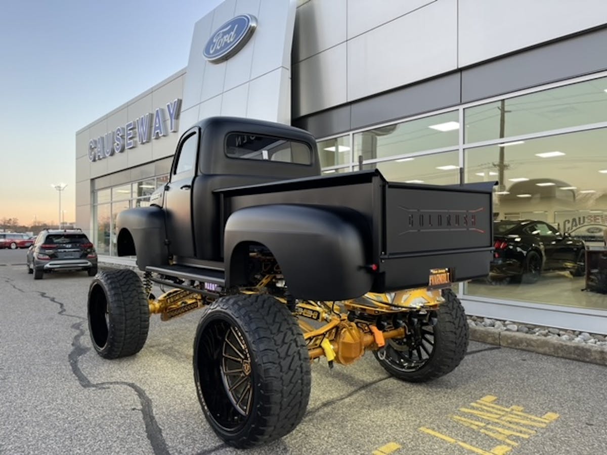 Ever since we started doing a truck of the week, some of the wildest trucks out there have shown their face. Last week’s truck was an old body style Ford with a Cummins diesel inside. This week’s, however, kept the brands together. Check out one of the wildest ’51 model Ford trucks you will ever see. Introducing, Goldrush.