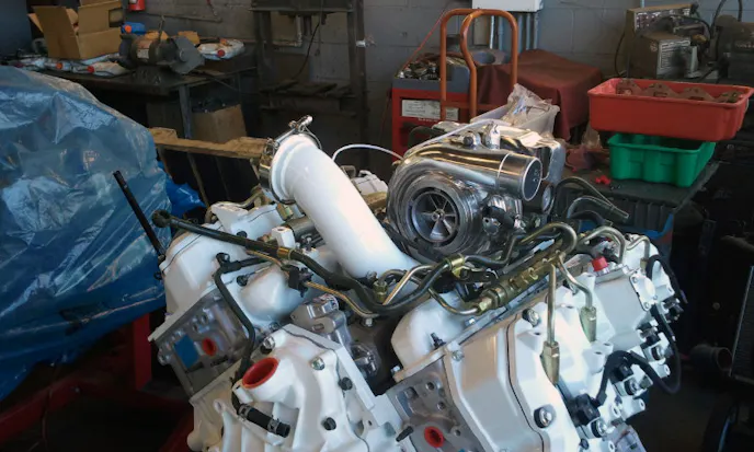 But it doesn’t stop there. The Garret GT4094VA turbocharger had its compressor housing extrude honed and polished, its exhaust housing extrude honed and Jet-Hot ceramic coated, and its heat shield Jet-Hot ceramic coated. The billet compressor wheel from Danville Performance was precision balanced, the aFe Power BladeRunner turbo mouthpiece was extrude honed and powder coated, and the EGR and PCV ports were plugged. In addition, the Merchant Automotive-sourced water pump had its gear and impeller TIG welded.