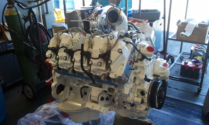Power production is the highlight of this rig, and the build started with a complete teardown. The block was decked and align-honed for the camshaft and crankshaft. All the machine work was performed by SoCal Diesel, and then it was reassembled by Robert Miller at MK Smith Chevrolet in Chino, California. The LLY received SoCal Diesel Stage 1 ported heads, SoCal Diesel .020-over cast and coated pistons (16.8:1 compression ratio), Carrillo connecting rods, a SoCal Diesel 3388 Hot Street/Tow camshaft, and an ATI/SoCal Diesel harmonic balancer. The entire rotating assembly was balanced, and the cam and crank were keyed. ARP head studs and main bearing studs were used on the block.