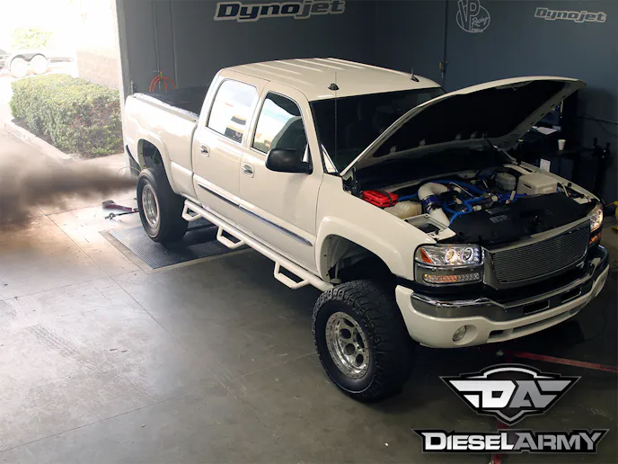 The extremely modified Duramax cranked out nearly 700 horsepower and more than 1,000 lb-ft of torque when Barnes joined us for the Diesel Army Duramax Dyno Days. To see and hear the 2005 GMC 2500 roar, check out the video above. Stay tuned to Diesel Army for more great Dyno Day videos and truck features.