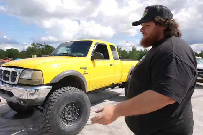 Champlin found the pre-swapped Ranger via Facebook Marketplace and immediately embraced its rough-and-ready nature. He declared, “this is my style, it’s junk and I love it.” After confirming its burnout potential (which violently removed the tonneau cover), he subjected it to a tug-of-war against his own massive big-block powered Ranger riding on 49-inch tires.