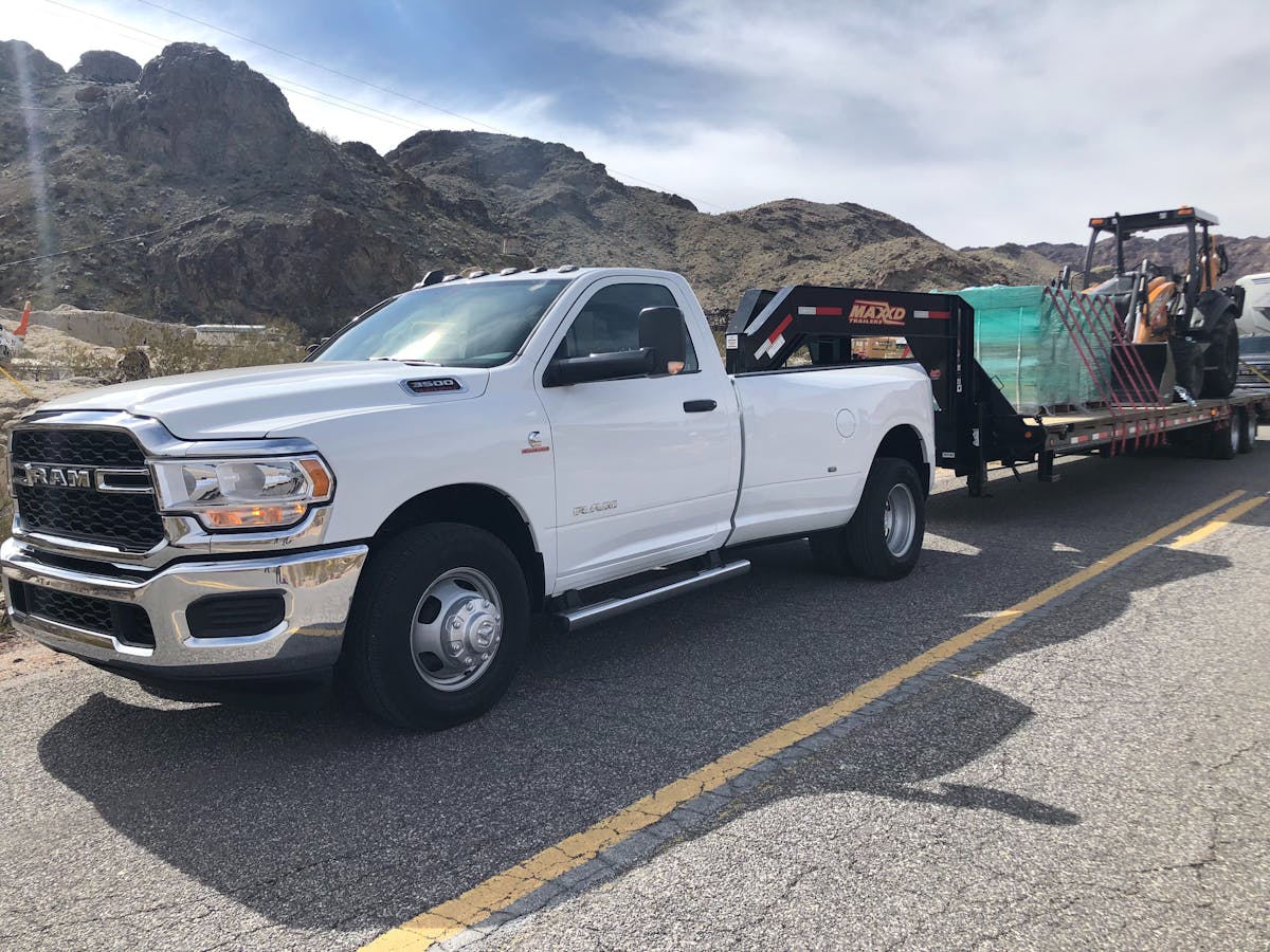 Take for example a 2019 Ram 2500. In this case, we’ll use Ram’s towing and payload guide and find a Laramie 2,500 four-door long bed with a 6.7-liter. 2,030 pounds payload and 15,510 pounds towing. 10 percent of 15,510 is 1,510 pounds, leaving 520 pounds for people and stuff. Payload is GVWR minus curb and curb weight includes a fully “wet” truck (all fluids and a full tank of fuel) but no driver.
