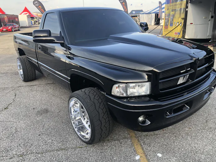 Like most of his trucks, the truck is black in color and features nothing but goodies on the outside and under the hood. This 2002 single cab, long bed Ram has been completely repainted since its purchase. Between him and his friend Mark, this truck got recolored to match the rest of the fleet. As you can tell, they’ve done an incredible job because the pictures really don’t do it justice.