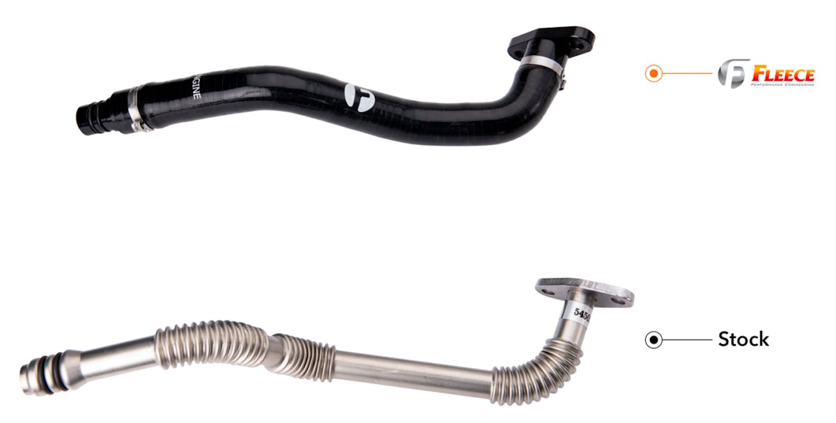 Finally, to make sure your turbo has sufficient oil Fleece has a new replacement turbocharger oil feed line kit designed for use with a Cheetah or stock Holset VGT turbochargers in the factory location. The line features a smooth-bore Teflon hose and AN fittings.