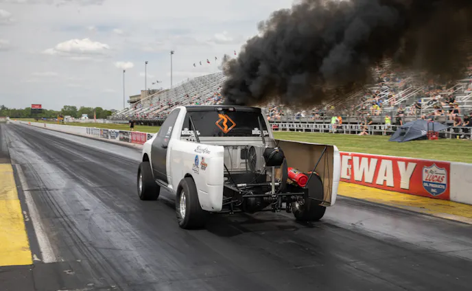 David Large wanted to get into a faster class of racing and as the Outlaw 5.90 class grew in popularity, his interest in driving in it followed. Large set himself up with some of his favorite companies and turned his new race-ready truck into a lethal 5.90 machine. With the help of his crew, Large and his bright red Ram put on a show and took home the 5.90 Index championship.