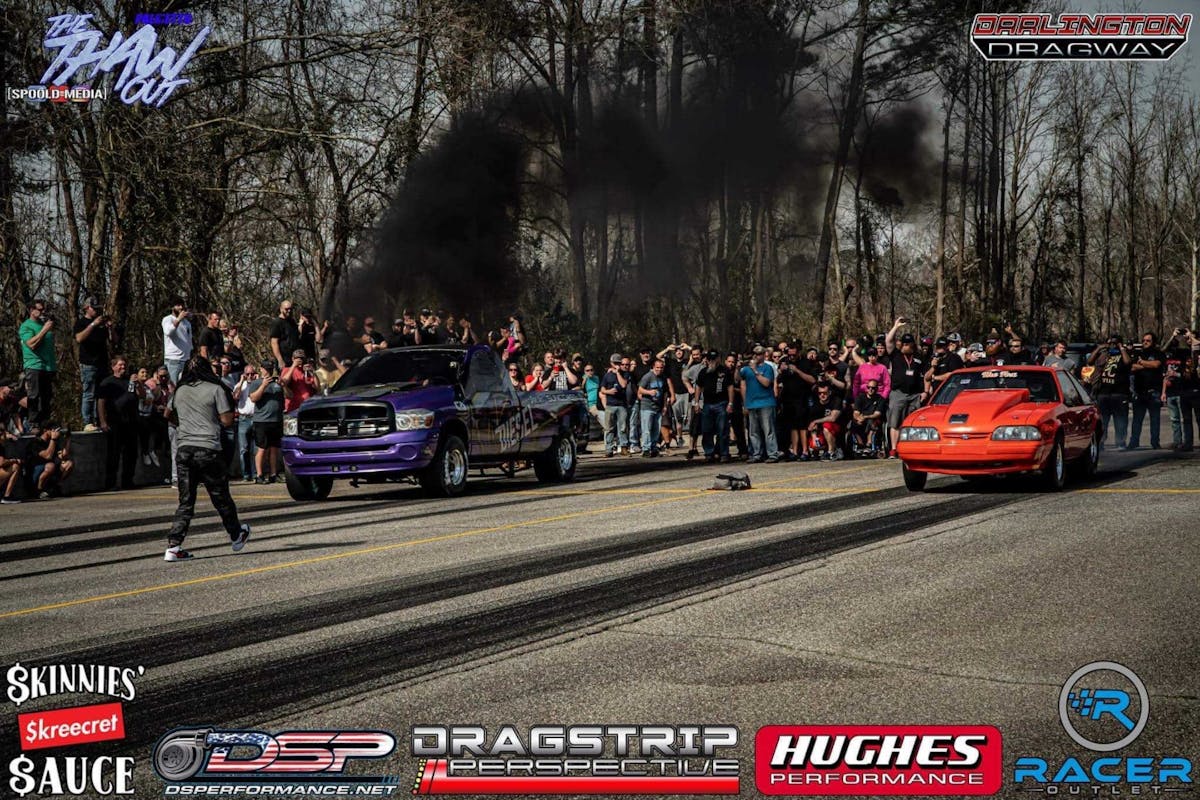 This past weekend at The Thaw Out at Darlington Dragway, the first of many end-of-track no-prep races, they had a pile of both small and big tire entries to race for a large pot. Specifically, the big tire pot was $8,000. When you start getting this amount of money involved, people are going to take things more seriously.