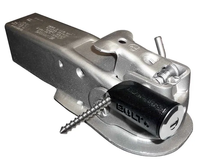Every trailer has a receiver (the part that “receives” the hitch ball assembly) and nothing is more depressing than finding out someone took your hitch because it was easy to remove. A receiver lock is one way to ensure no one removes your hitch or unhooks your trailer when you park. The BOLT receiver locks are plated with a cast-zinc cylinder and case, so corrosion resistance is built in. They feature a durable, stainless-steel pin, a rugged cover jacket, an automotive-grade lock shutter to keep out weather and debris, and a six-plate tumbler sidebar that prevents picking and bumping. Bumping is a way thieves bust your lock and take what they want.