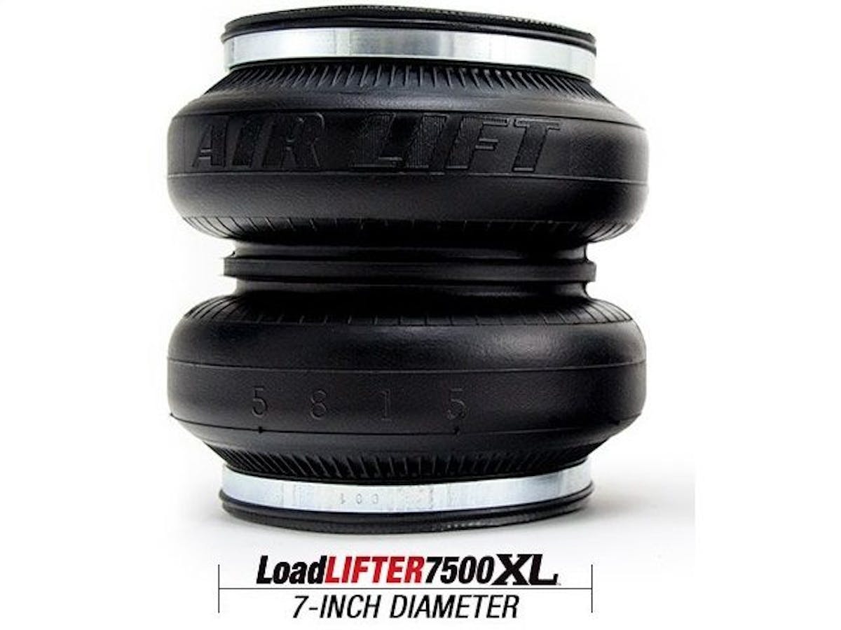 The LoadLifter 7500 XL series features a pair of massive 7-inch, double-convoluted air springs that eliminate the problems frequently faced when towing and hauling, including squat, trailer sway, body roll, and bottoming out. The larger volume of these air springs allows these benefits to be provided at lower air pressures, creating a noticeable difference in ride quality. The air springs help to evenly raise and support the rear weight, making towing and hauling safer and more comfortable with optimal braking and steering control.
