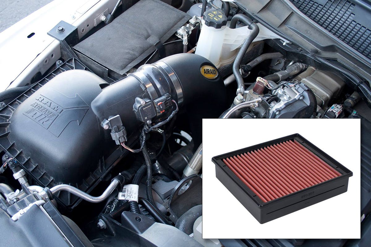The new Airaid Jr. System for the 2013 to 2015 Ram 2500 and 3500 trucks with the Active-Air box-equipped 6.7-liter turbo diesel engine targets the most restrictive parts of the factory intake system: the paper filter element and the intake tube. The Airiad system combines a premium Direct-Fit Replacement Filter and an AIRAID Modular Intake Tube to provide more power and fuel economy. The OEM intake tube is corrugated and filled with baffles, which hurts airflow. The Airaid Jr. system helps straighten and improve airflow to the engine.