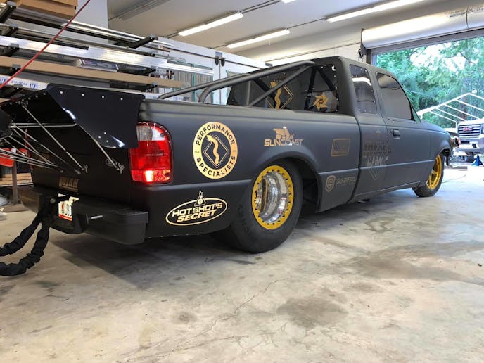 Although Milliken doesn’t have a ride anymore, or yet I should say, he couldn’t stay away. He’s been helping Johnathan Montesino prepare his Ford Ranger for some radial tire racing and sure enough, they trust these ET Street Radial Pro’s from Mickey Thompson. “We’ve been testing with this truck for a while and it seems as if the truck gets faster every time we put a smaller tire on it,” said Milliken.